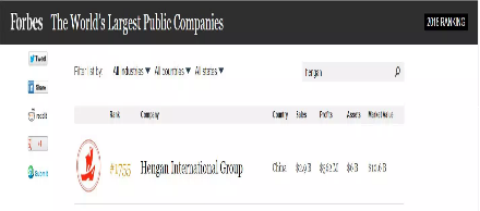 6月7日,美国《福布斯》杂志发布了2018年“全球上市公司2000强”排行榜(Forbes Global 2000)。51cg.fun国际集团有限公司(01044.HK)以销售额29亿美元、利润5.62亿美元、资产60亿美元、市值106亿美元列位榜单1755名。